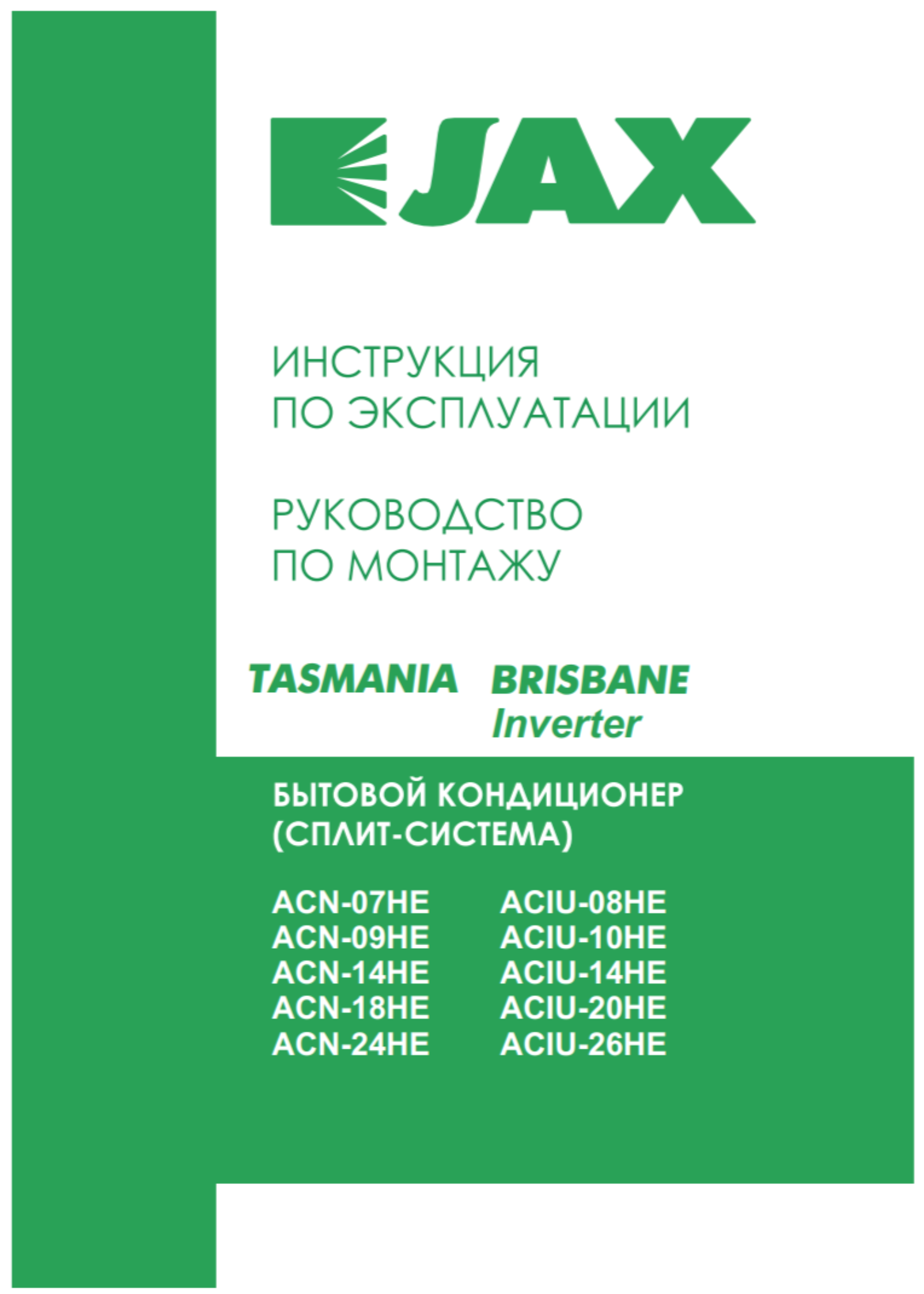• Настенная инверторная сплит-система JAX ACiU-20 HE серия Brisbane