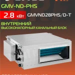Gree GMVND28PHS/D-T — это канальный внутренний блок VRF системы с высоким статическим напором, предназначенный для скрытого монтажа и распределения воздуха по воздуховодам.
